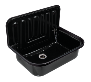 Описание Мивка Аусгус, стомана, черна, емайлирана С пластмасова рамка, черна Дебелина на стоманата на мивката 1 мм Включит. профил гръб…