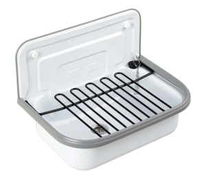 Описание Мивка Аусгус, стомана, бяла, емайлирана С пластмасова рамка, сива Дебелина на стоманата на мивката 1 мм Включит. профил гръб…