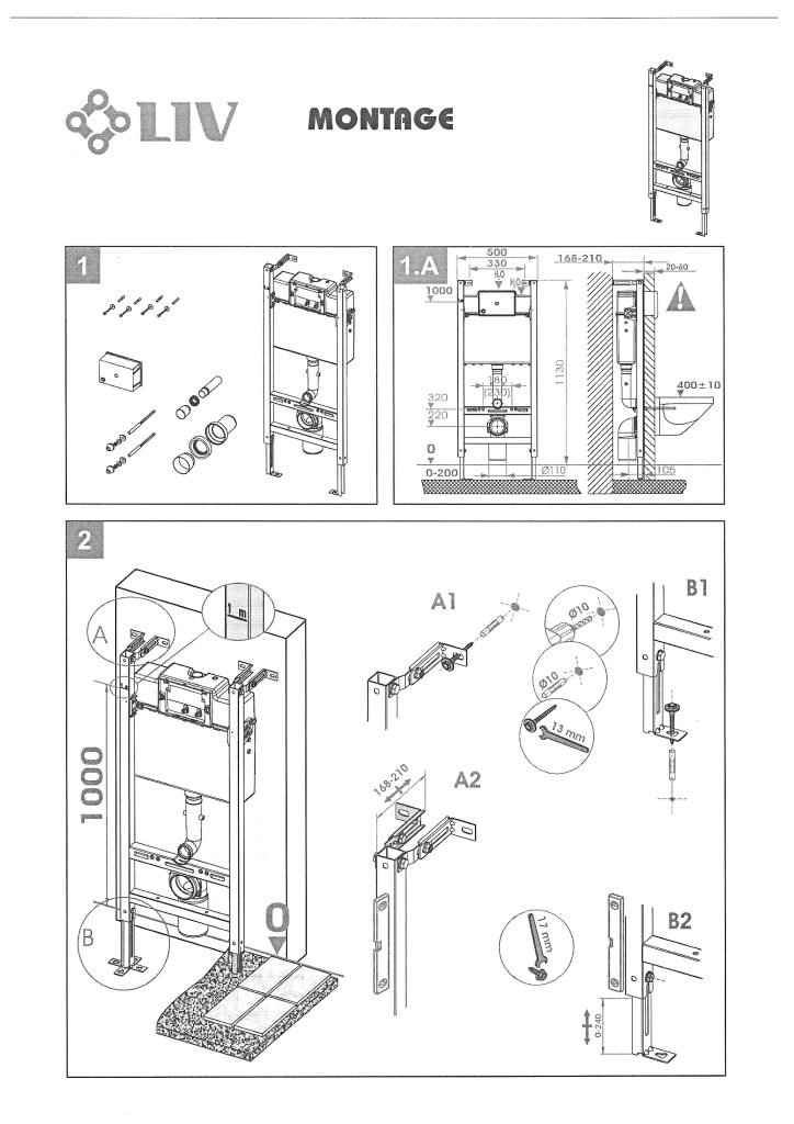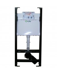 Структура с казанче за вграждане тип сух монтаж за конзолна тоалетна, цвят черен. Монтаж пред стена, височина 1130 мм, ширина 500 мм, предно разположение на двустепенен бутон за пускане на водата.